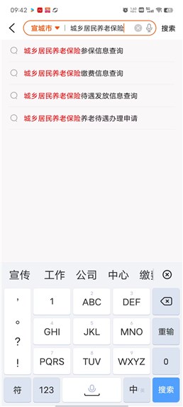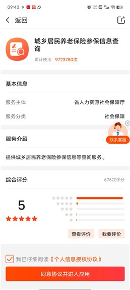 2、在搜索欄搜索城鄉居民養老保險參保信息查詢,同意協議并進入應用。