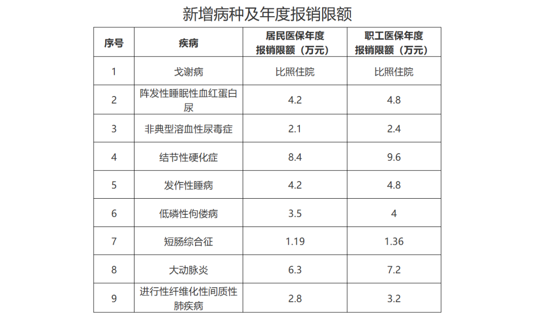 為保障參保患者長期門診治療需求,根據國家醫保藥品目錄新增藥品情況,在組織專家咨詢論證的基礎上,決定將戈謝病、結節性硬化癥、低磷性佝僂病等9種疾病新增納入我省基本醫保門診慢特病病種保障范圍。全省執行統一的病種編碼、認定標準和醫保基金年度最高支付限額。參保患者經臨床專家鑒定符合病種認定標準的,可按規定享受慢特病門診醫療保障待遇。