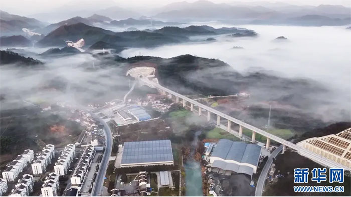 航拍建設中的宣績高鐵。來源:新華網
