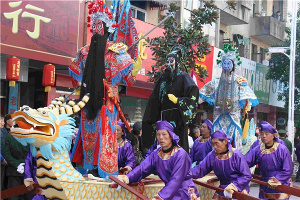 位于伏嶺鎮中心地帶的石川村,人口二千多人,為伏嶺鎮的大村落。村中張姓家族和洪姓家族相融而居,每年春節,三十歲值年的青壯年牽頭組織舉辦以紀念唐朝抗擊安史之亂的叛軍而死守睢陽而亡的大英雄張巡、許遠和南霽云等先烈為題材的大型船會游藝活動。