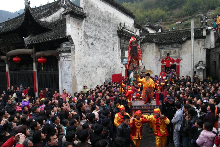 "花車轉閣"也稱"秋千"。這一民間藝術為江南一絕。起源于清代嘉慶年間。"花車轉閣"這一民間藝術在績溪湖村、長安鎮坦頭村、莊團村、莊鎮瑞川村廣為流轉,并成為迎神賽會和節慶盛會的傳統游藝項目,每年正月十五日元宵節、八月十五中秋節舉行活動。
