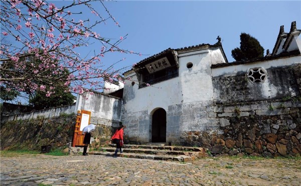 踏歌岸閣剖面設計既結合地形,又結合景觀,還考慮了適用。它利用前后、寬窄、平陡、長短不同的兩段踏步,很巧妙地把高差約3米左右的河面與街面有機地聯系起來了。為了觀賞桃花潭風景,在閣前設有稍低室內地坪二三級的與沿河路連成一氣的平臺,使更多的人能在此觀景,尤其是五月端午看龍船,這里是披紅掛彩的地方,人特別多。迎河立面以實墻為主,適當開設門窗,遠看兩層高的踏歌岸閣一片白墻是全鎮沿河輪廓的制高點,加上閣左水平線條的大夫第及高大挺拔的清朝的白果古樹,組成了一幅南陽鎮臨河入口處的風景畫面。近看此立面正中上虛下實,上虛突出“踏歌古岸”橫匾,下實河水的波光映在白色的墻上有水中浮過白云之感,十分動人。