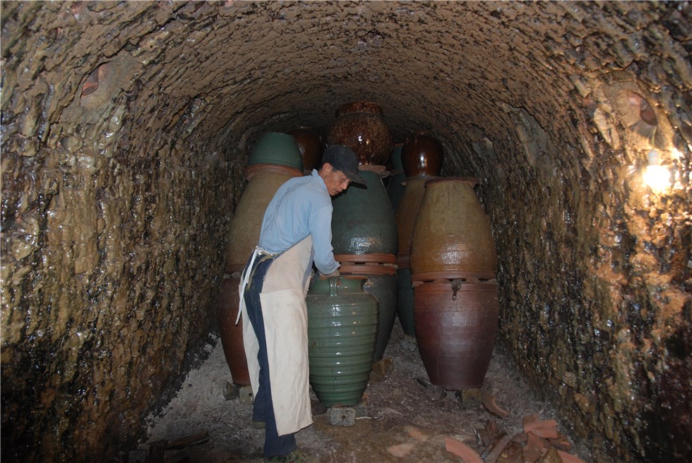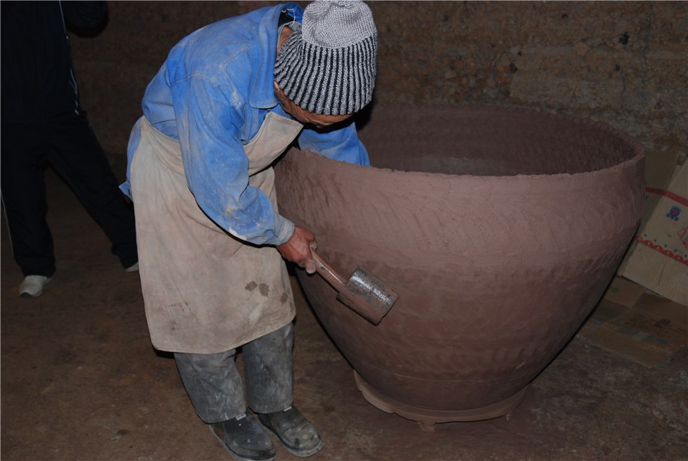 寧國大器傳統(tǒng)工藝主要以粘土為原料制成泥,經(jīng)過泥料的儲(chǔ)備及揀揉,捶坯修坯、拤把成型、手工上漿及畫花,然后裝入龍窯燒制而成,拤把、捶坯所用的各種工具,窯具的制作及裝窯技術(shù),火焰氣氛及燒制技術(shù)等方面完全靠老師傅經(jīng)驗(yàn)掌握,任何一道工序出錯(cuò)都燒不出成功的陶器。