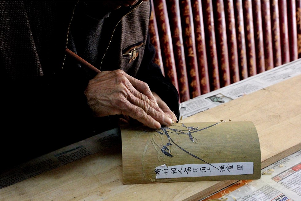 皖南竹刻,是在竹制品上雕刻人物、動植物、花草、圖案和文字的一種傳統藝術。