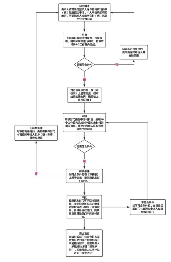 困難殘疾人生活和重度殘疾人護理補貼申請辦理流程圖