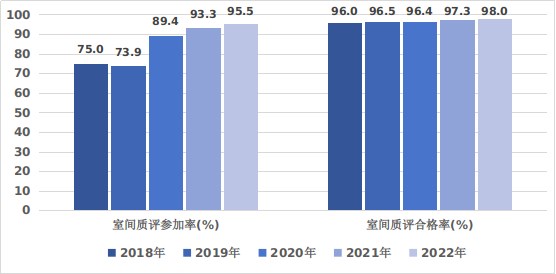 圖5 2018-2022年三級公立醫院室間質評項目參加率和合格率情況