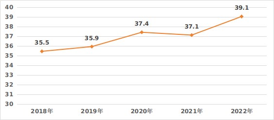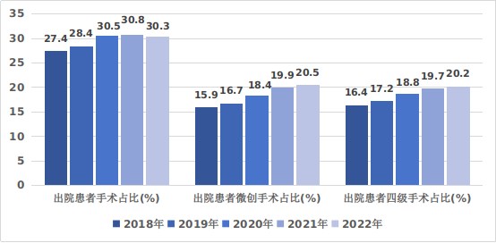 圖2 2018-2022年三級公立醫院出院患者手術開展情況