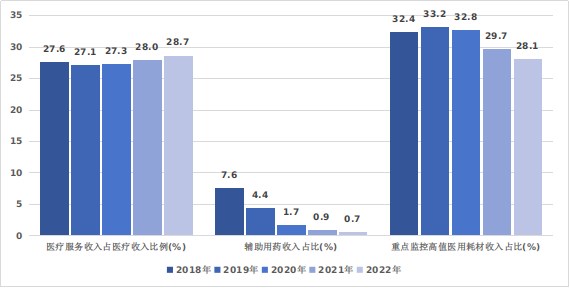 圖7 2018-2022年三級公立醫院收入結構情況