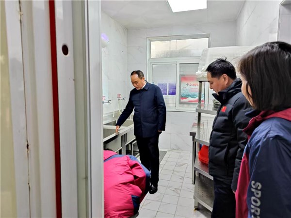 陳自水一行深入學校門衛室、食堂、學生宿舍等重點部位實地查看校園安防建設、消防安全、食品安全等重點領域安全管理情況,詳細了解學校春季開學情況,重點詢問學校招生、體育課開設、大課間活動開展等情況。