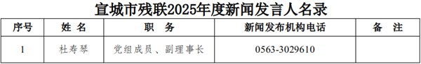 名稱: 宣城市殘聯2025年度新聞發言人名錄 文號: